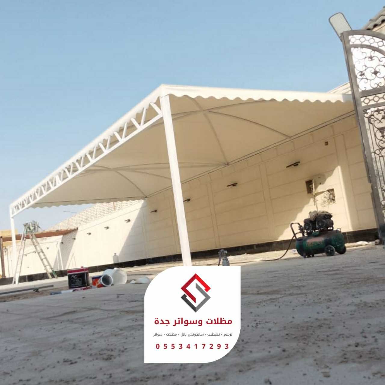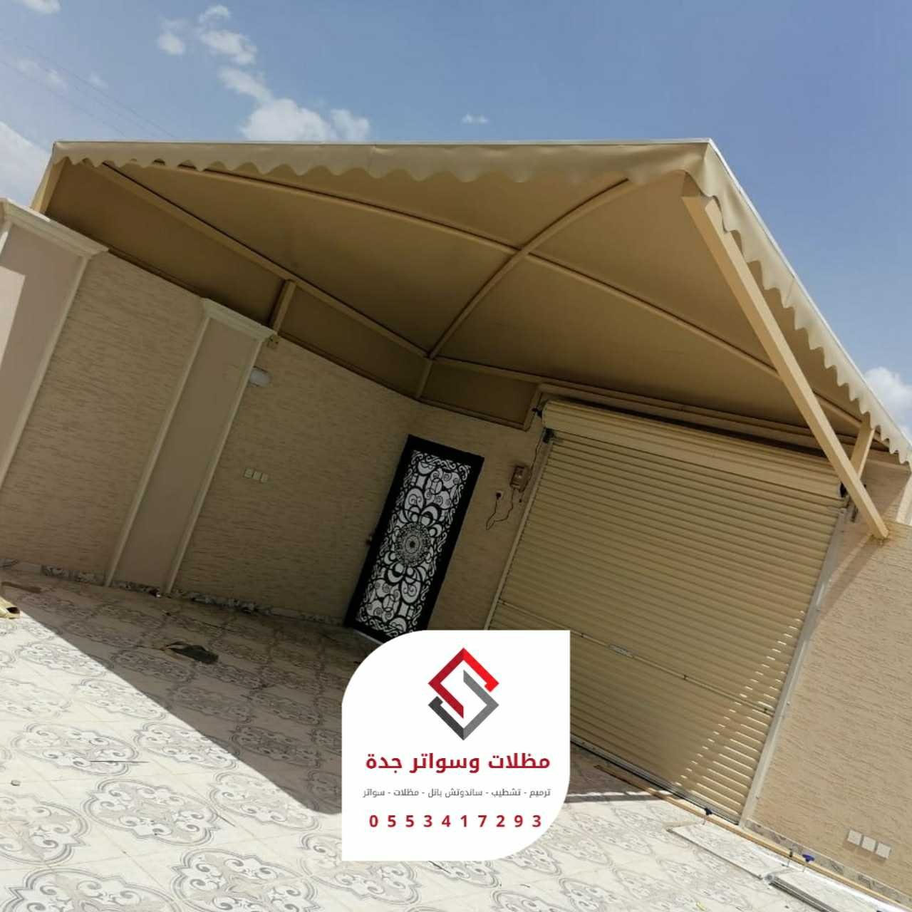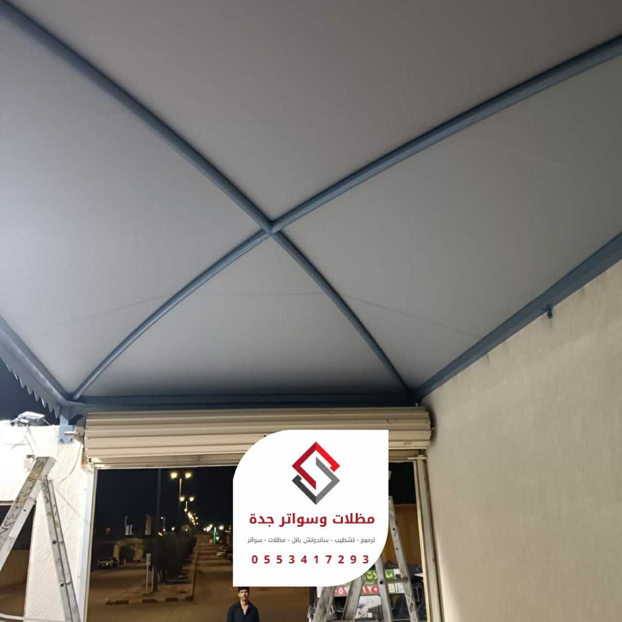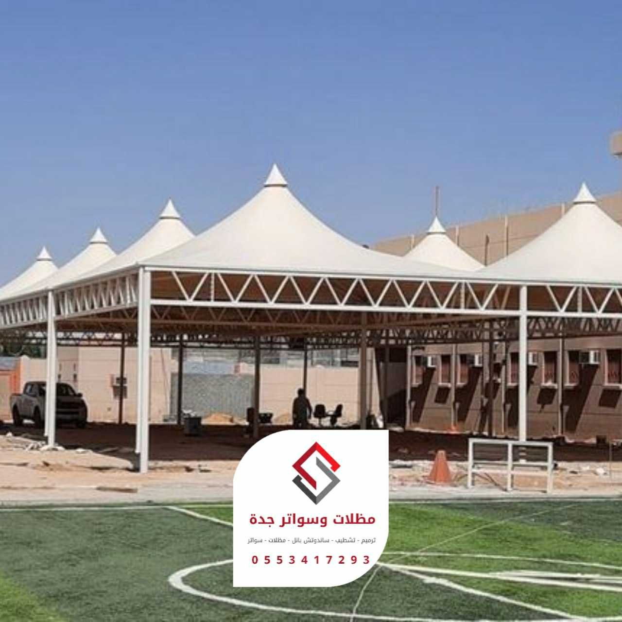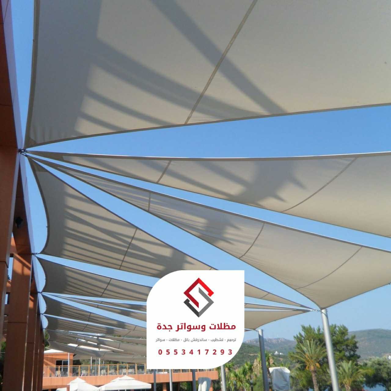 2. المظلات الثابتة (القماشية/البولي كربونيت):